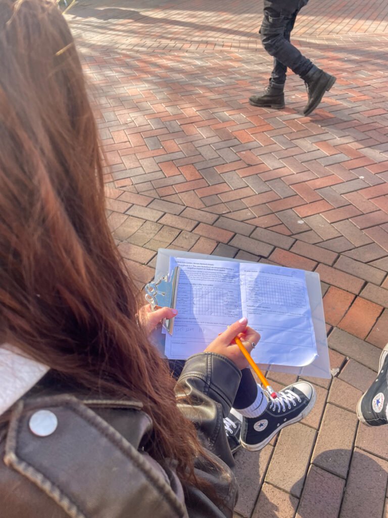 We then headed to Stafford Town Centre to look at how the new Waterfront Shopping development was having a negative effect on the town. We conducted a bi-polar analysis of the old town and the Waterfront areas to evaluate the surroundings. Even though it was a bit chilly, we were able to collect meaningful data, prepare for exams and also have fun!