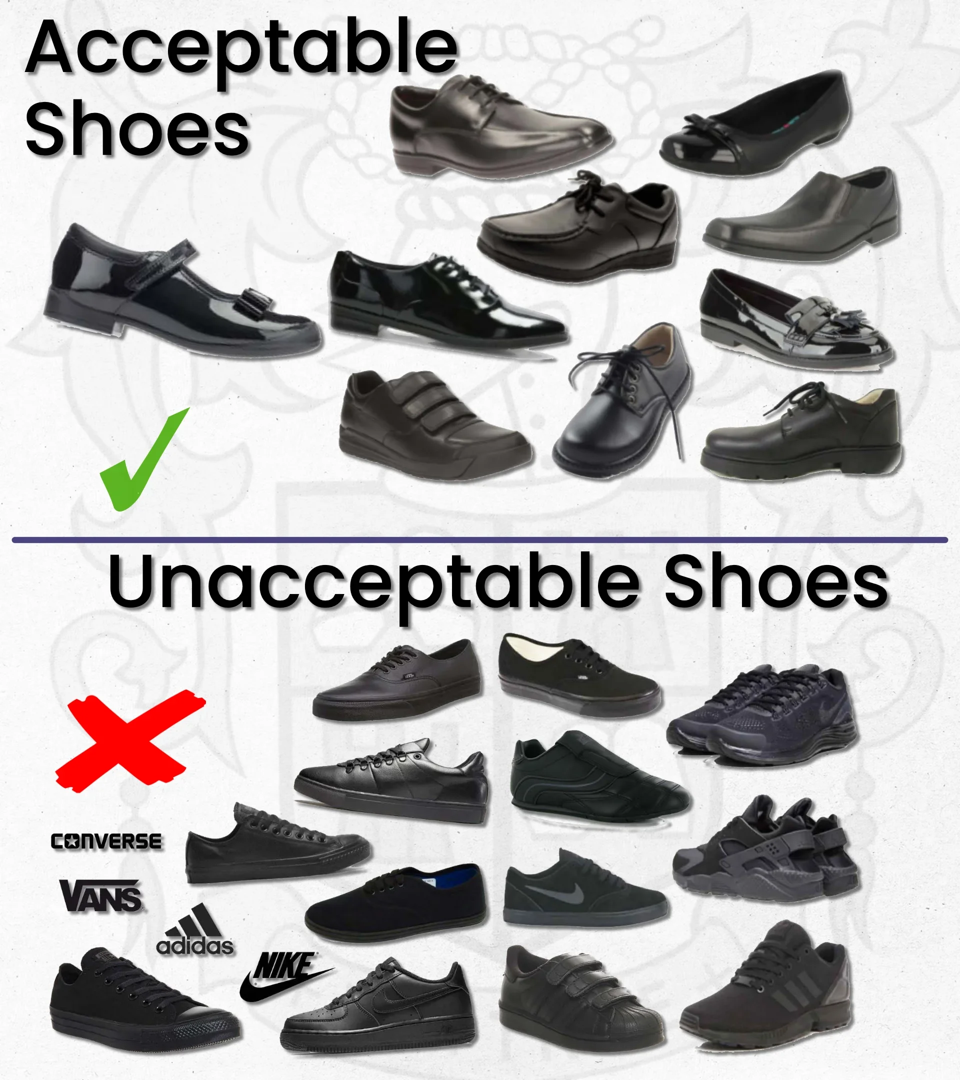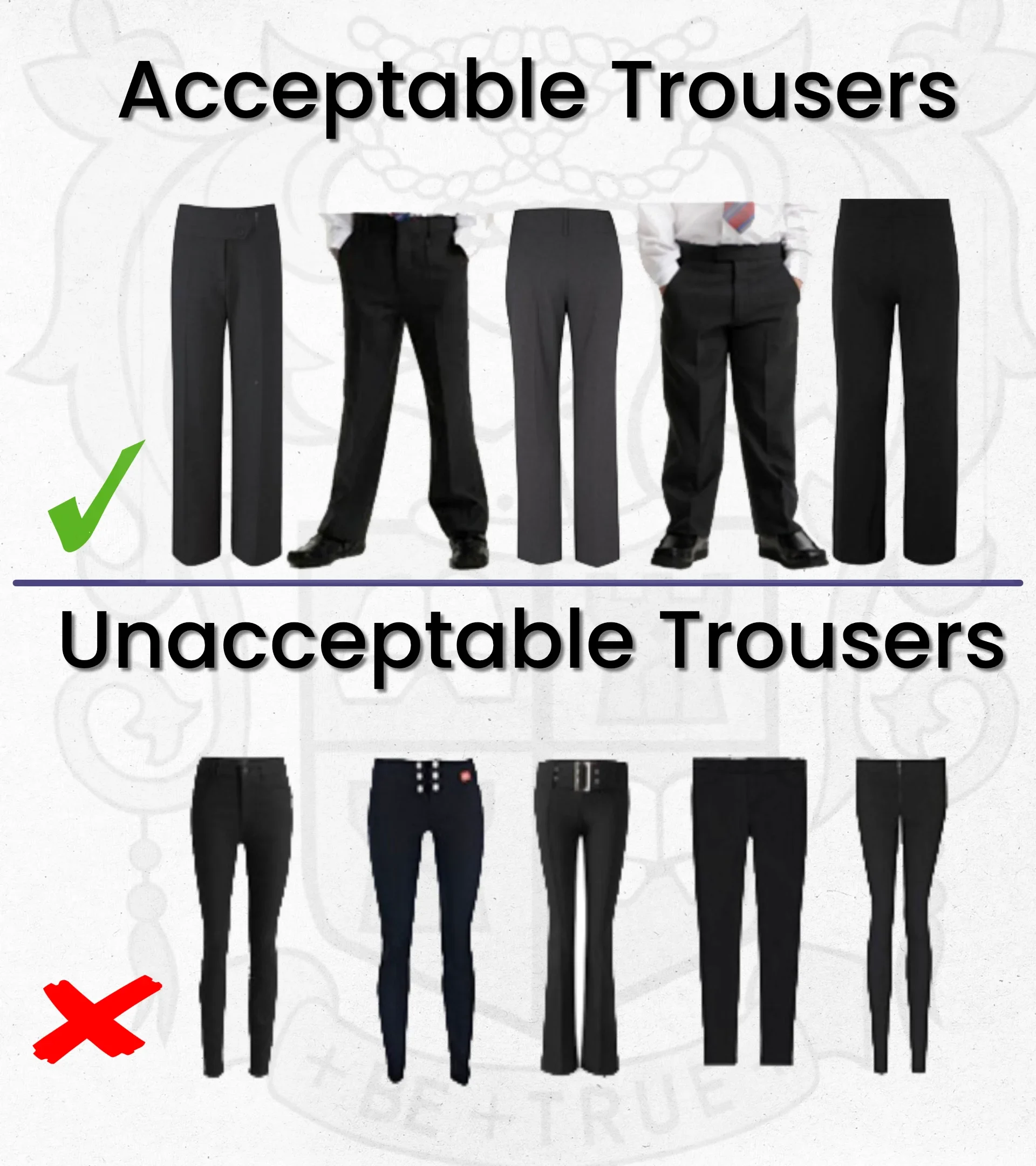 Compliance with school rules and good behaviour are underpinned with compliance of adopting the school uniform policy. I would much rather spend my time commending students on their hard work than give constant reminders of what is expected of all students to a limited few that are reluctant to comply. Throughout the last eight weeks we have reinforced our requirements and given many reminders to a small minority that continue wear trainers instead of shoes or wear very short skirts, roll their skirt up so it is worn short, or wear leggings instead of trousers with a pocket. We have been generous, allowing time for adaptations to be made and now expect all students to comply from the start of next half term. Those not meeting our uniform expectations will be offered suitable, clean replacements until they can provide their own. If you are in any doubt as to our uniform policy, please consult our website via the link below.