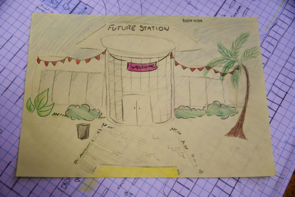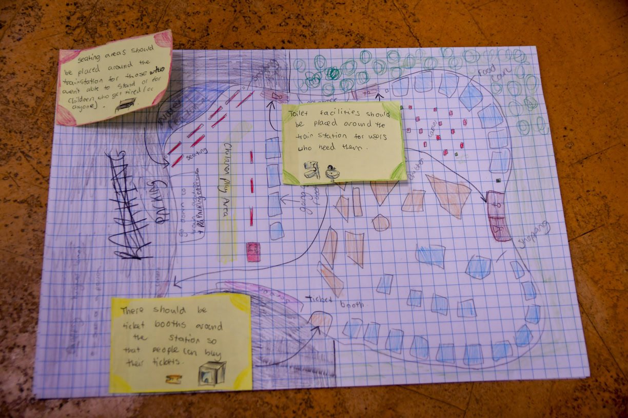 Each team was given and the task of designing ‘The station of the future’ with a focus on the environmental impact. Pupils were asked to consider using sustainable materials as well as thinking about how a train station of the future might be powered. Each group was then asked to present their ideas to 3 other teams explaining why they had made certain choices.