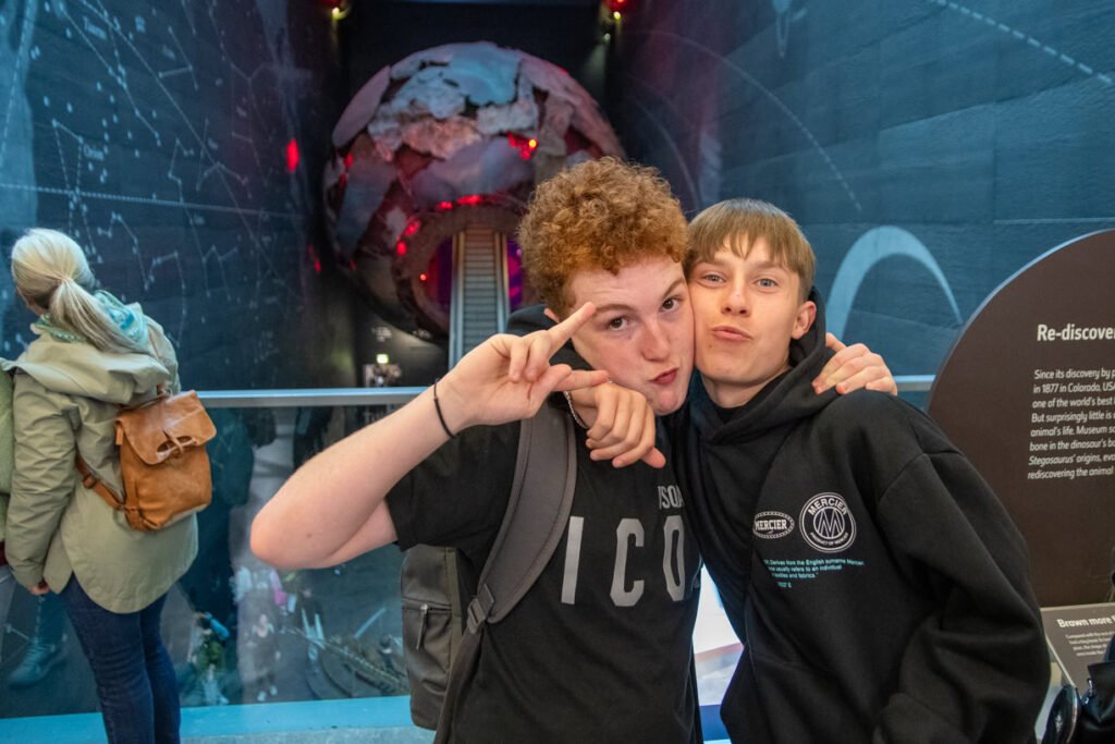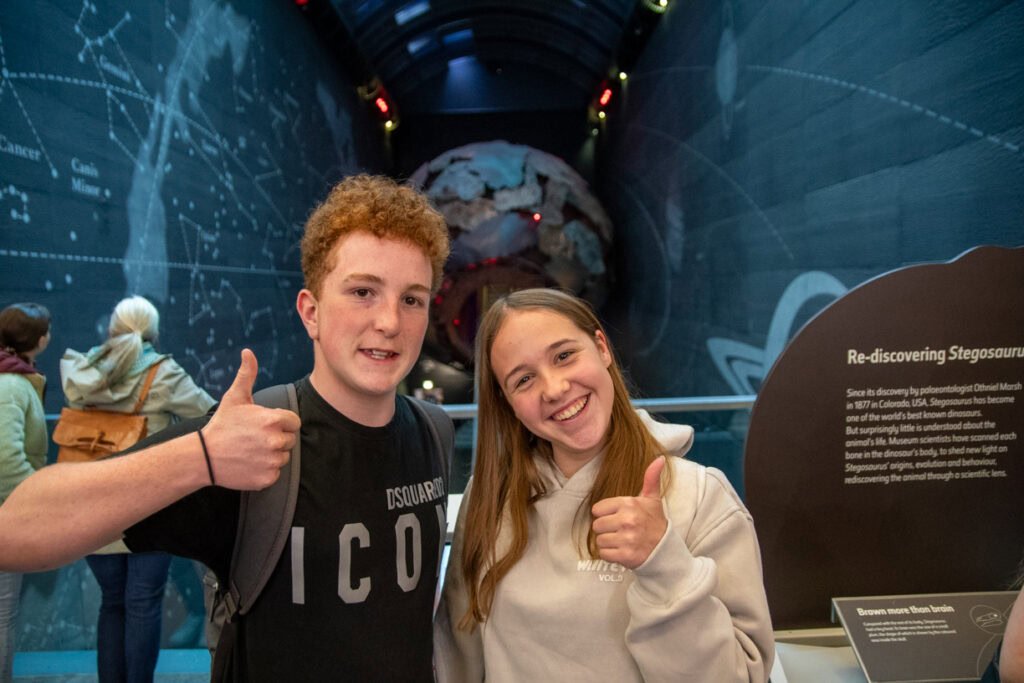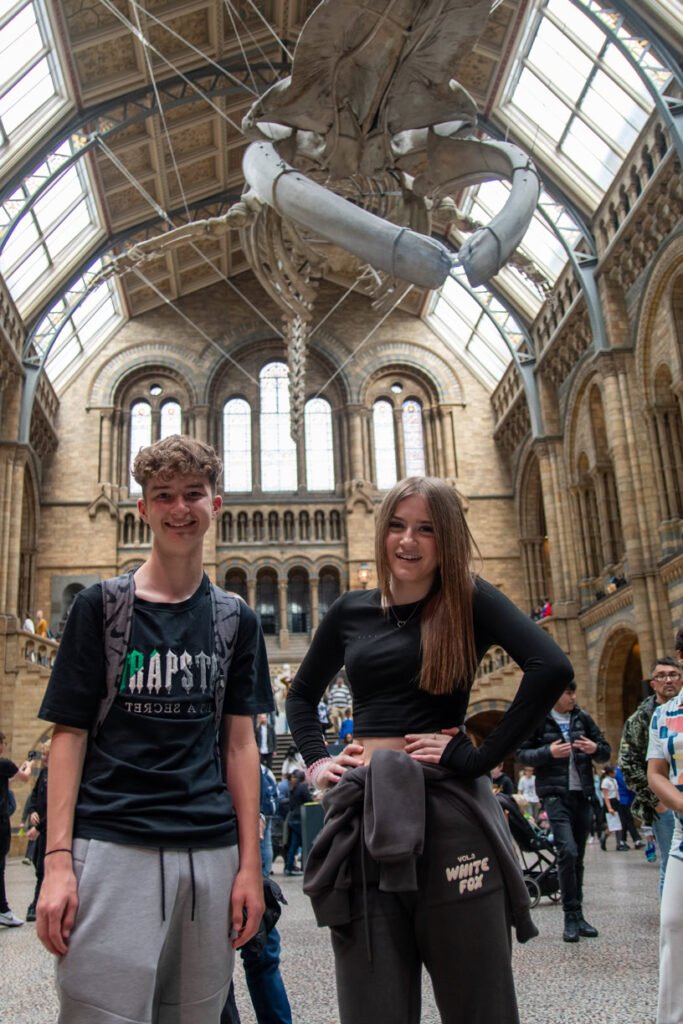 Arriving in London, the city’s energy seemed to pump through the students. Stepping into the grand Natural History Museum was like stepping into another world. A towering blue whale skeletons greeted them, their size leaving everyone speechless. The day unfolded like a captivating story. Students explored the vast halls, marveling at the diversity of life on Earth – from the shimmering scales of exotic fish to the prehistoric giants of the past. Interactive exhibits brought the natural world alive, allowing the students to get up close and personal with fascinating creatures and delve deeper into the mysteries of evolution. The students learned about everything from the intricacies of DNA to the challenges of climate change.