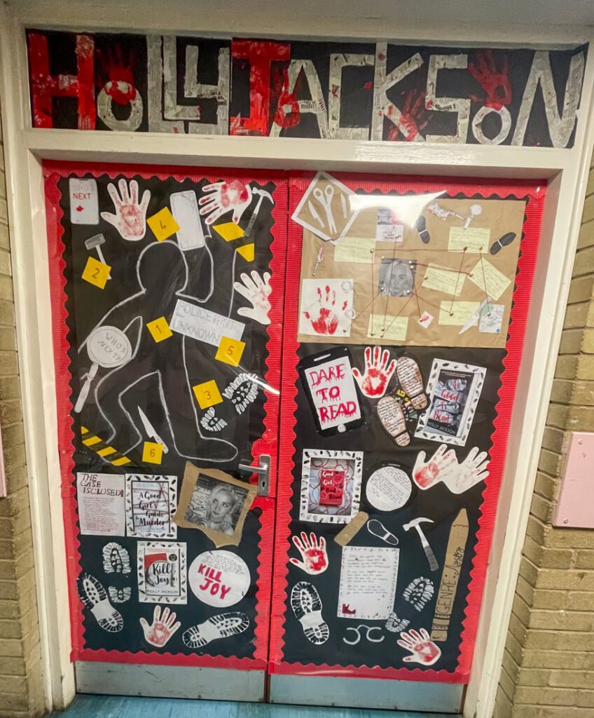 The winning form in year 9 created yet another stunning door showcasing the writer, Holly Jackson. A huge well done to 9CHB. This display was so eye-catching and informative and hopefully will have encouraged some of our students to pick up and try one of her books.
