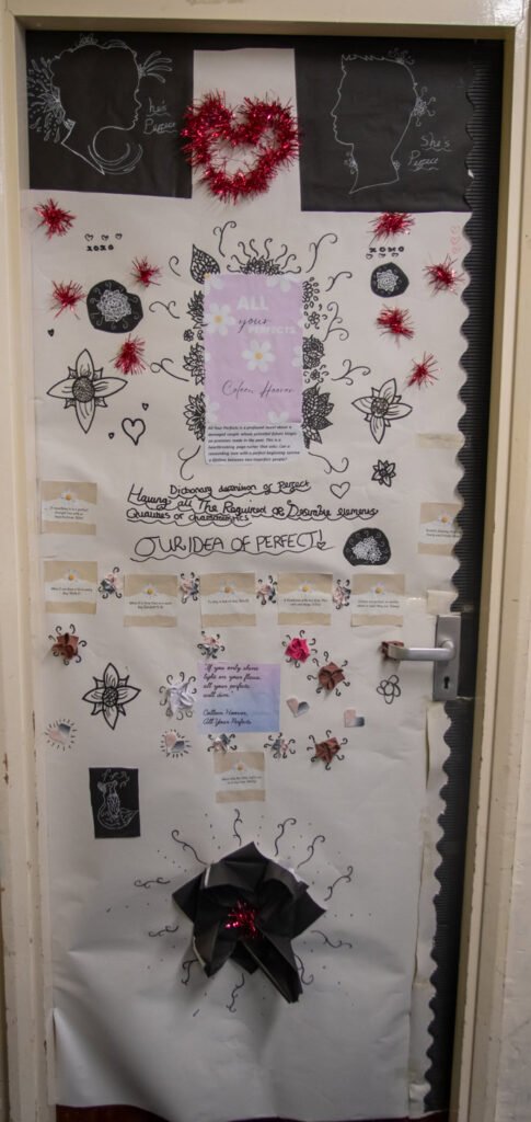 A big well done to 10 TW for winning with their door display for the writer Colleen Hoover. This group focussed on one of the books she has written and created a delicate display complete with paper flowers.
